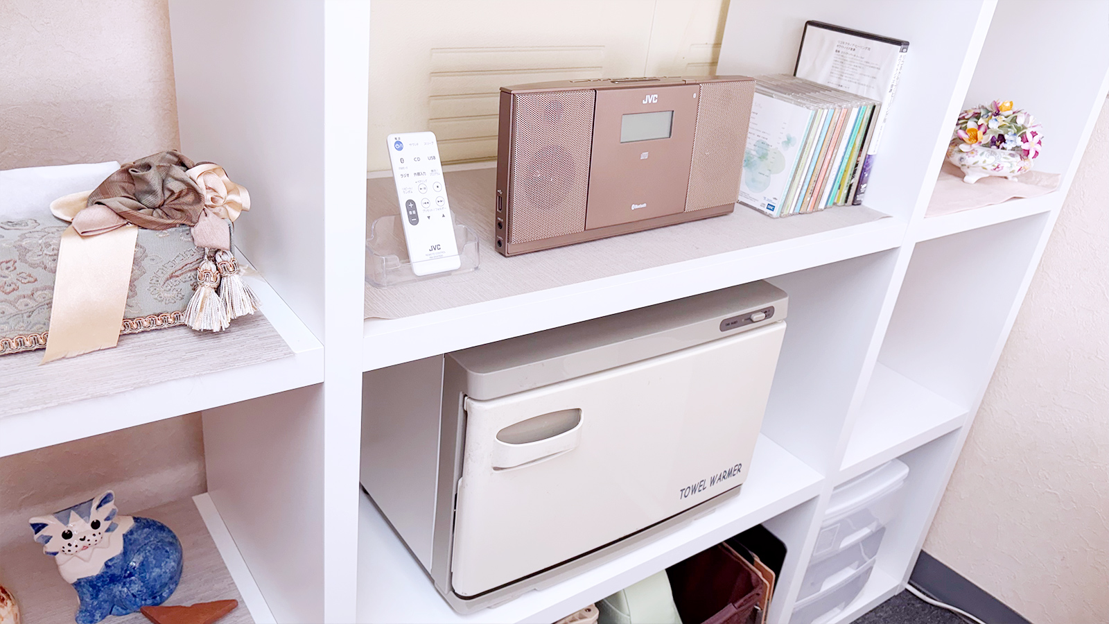 それに、壁に素敵な絵が飾ってあったり、ティーカップがおしゃれだったり、タオルウォーマーや姿見、間接照明やCDプレーヤーなどの備品も揃っていたりするので、クライアントさんにレンタル料金を言うと「そんな風に見えないですね」と驚かれます。